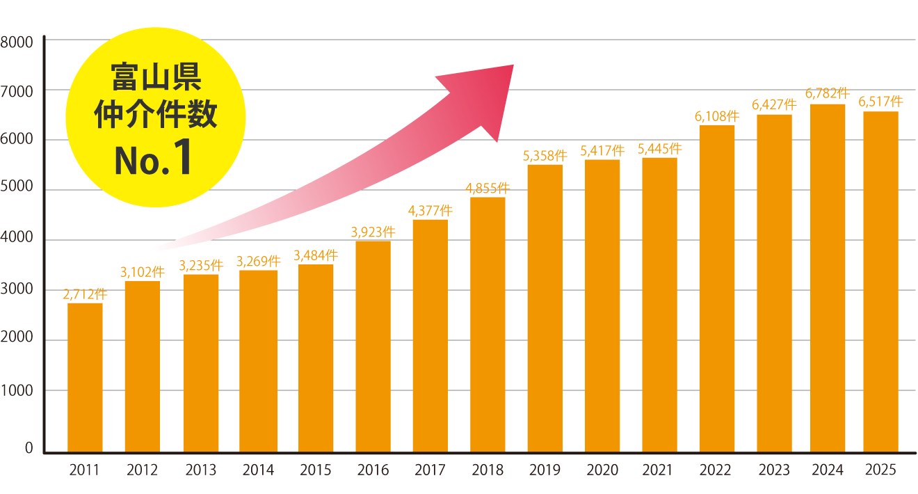 2025年度仲介件数6,517件(2025年8月31日時点数値)