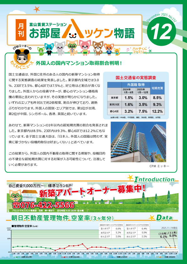 - 東京の新築アパート開発順調!