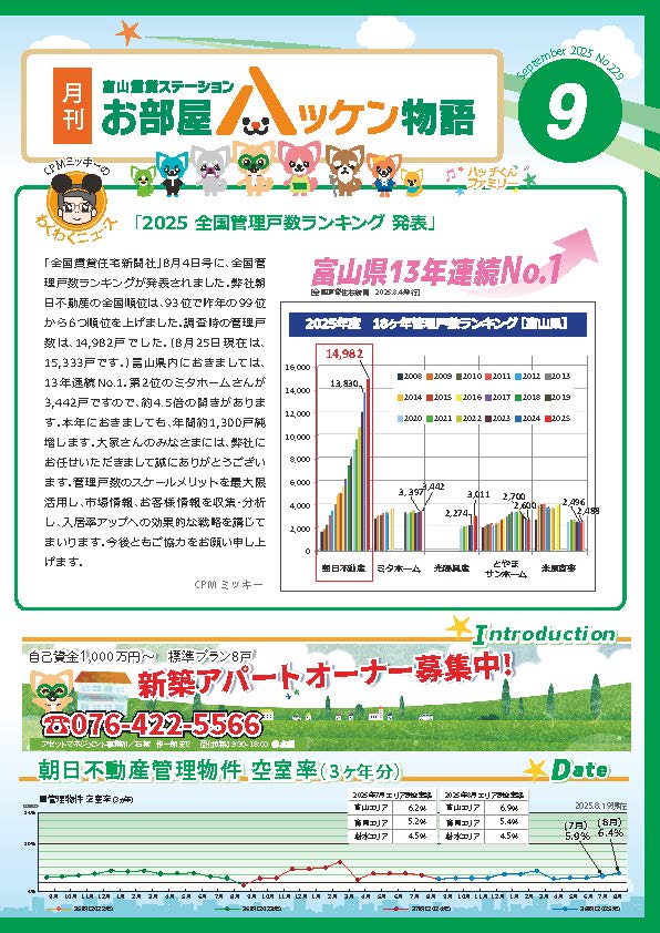 - 9月中旬から月末にかけて物件の全体巡回を行いました